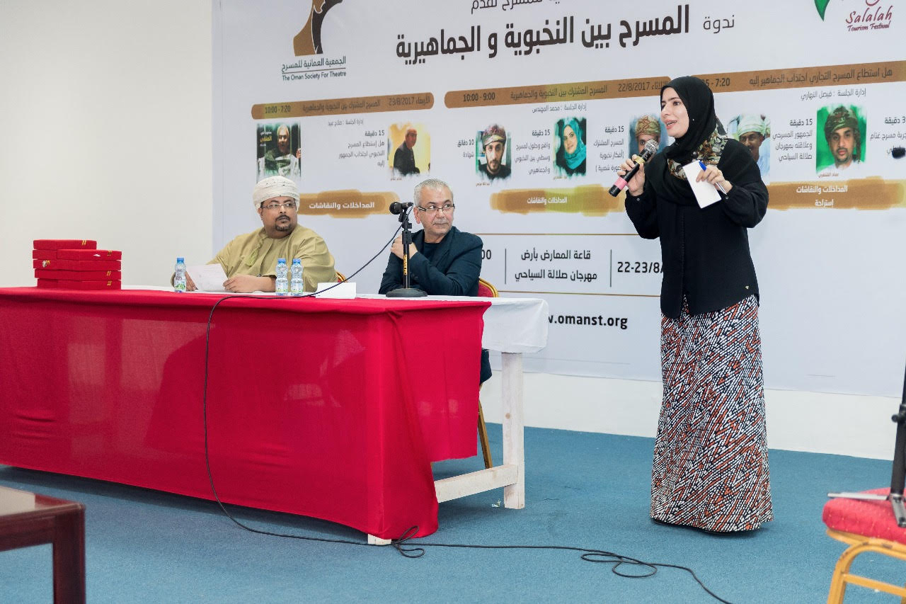اختتمت الجمعية العمانية للمسرح ندوة المسرح بين النخبوية والجماهيرية التي نظمتها بالتعاون مع اللجنة المنظمة لمهرجان صلالة السياحي يومي22-23/8/2017م بقاعة المعارض بأرض المهرجان.